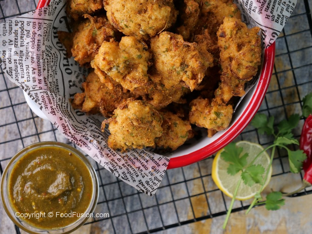 -In a wok,heat cooking oil & fry rice pakora on medium flame until golden brown & crispy.