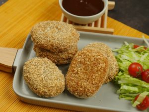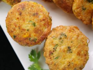 -Grease hands with oil,take small quantity of mixture (45g) & make tikkis of equal sizes.