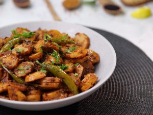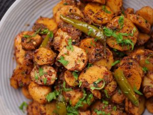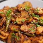 -In a serving plate, add achari arvi, garnish with fresh coriander & serve!