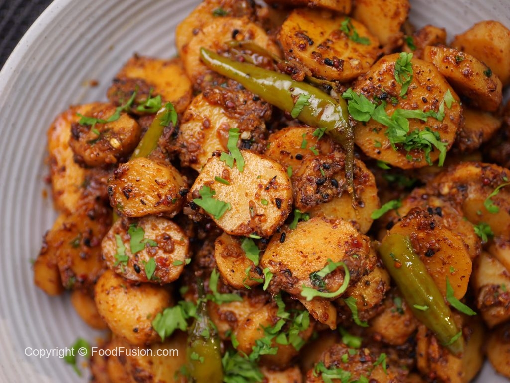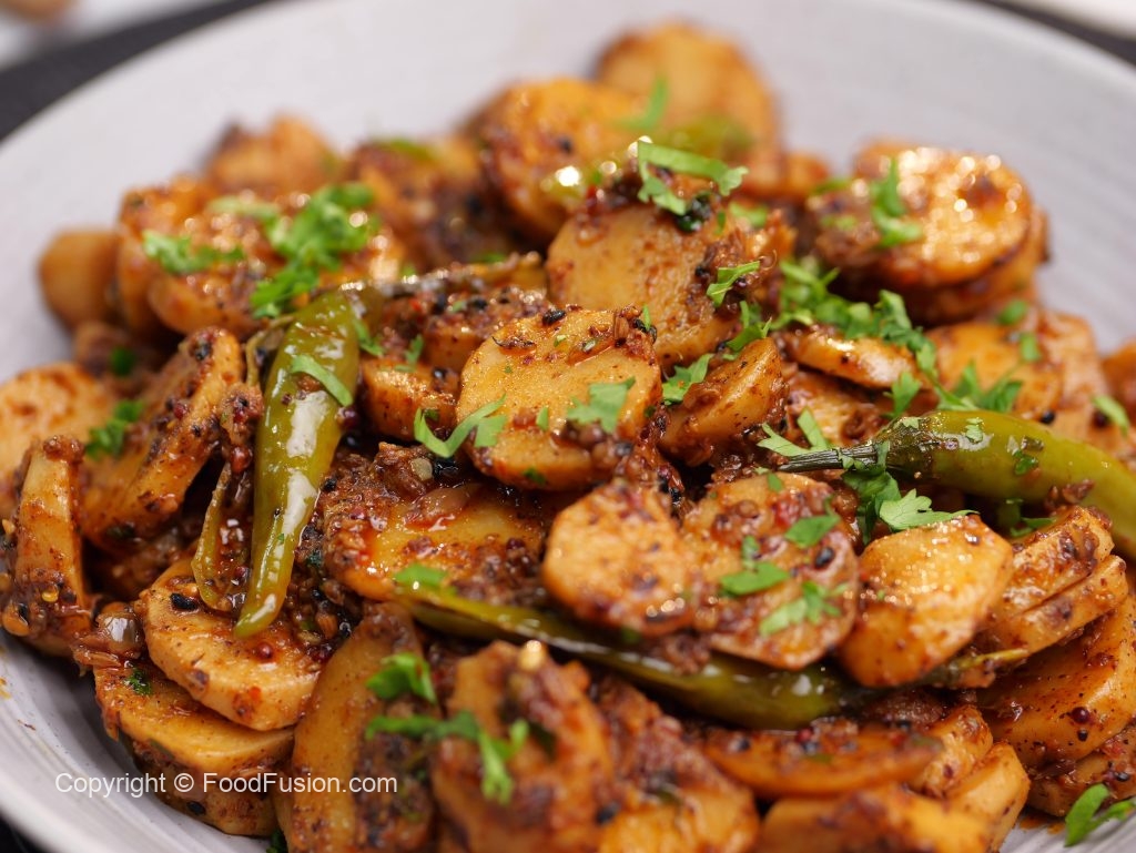 Achari Arvi Masala made with bold pickling spices and tender arvi. A flavorful desi dish that tastes perfect with roti or rice.#foodfusion #desifood #arvi #happycookingtoyou #digitalammi