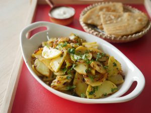 Lal mirch crushed aur namak dal ker ache tarhan mix karein aur halki ancch per aloo gul janay tak paka lein (15-20 minutes) aur beej beej mein chamcha chalatay rahien.