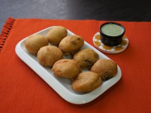 Grease hands with oil,take a mixture and make a flat round balls and coat in prepared gram flour batter.
