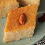 Prepare Basbousa cake with semolina & almonds:
