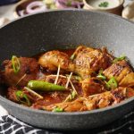 In a wok,add cooking oil,marinated chicken and cook on low flame for 12-15 minutes then cook on high flame for 2-3 minutes and turn sides in between.