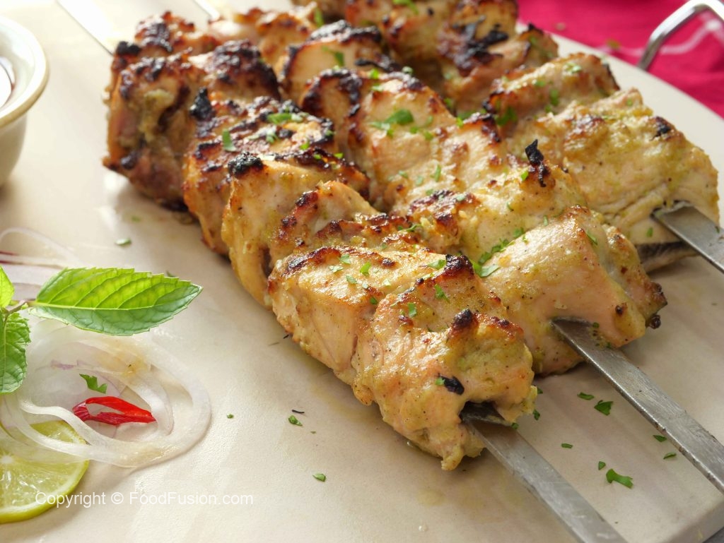 -Put skewers on (burning charcoal) bbq grill and grill from all sides until done & brush oil in between.