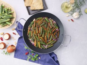 -Frying pan mein cooking oil aur stuffed bhindi dal ker halki acch per 12-15 minutes kliya paka lein & side per rakh dein.