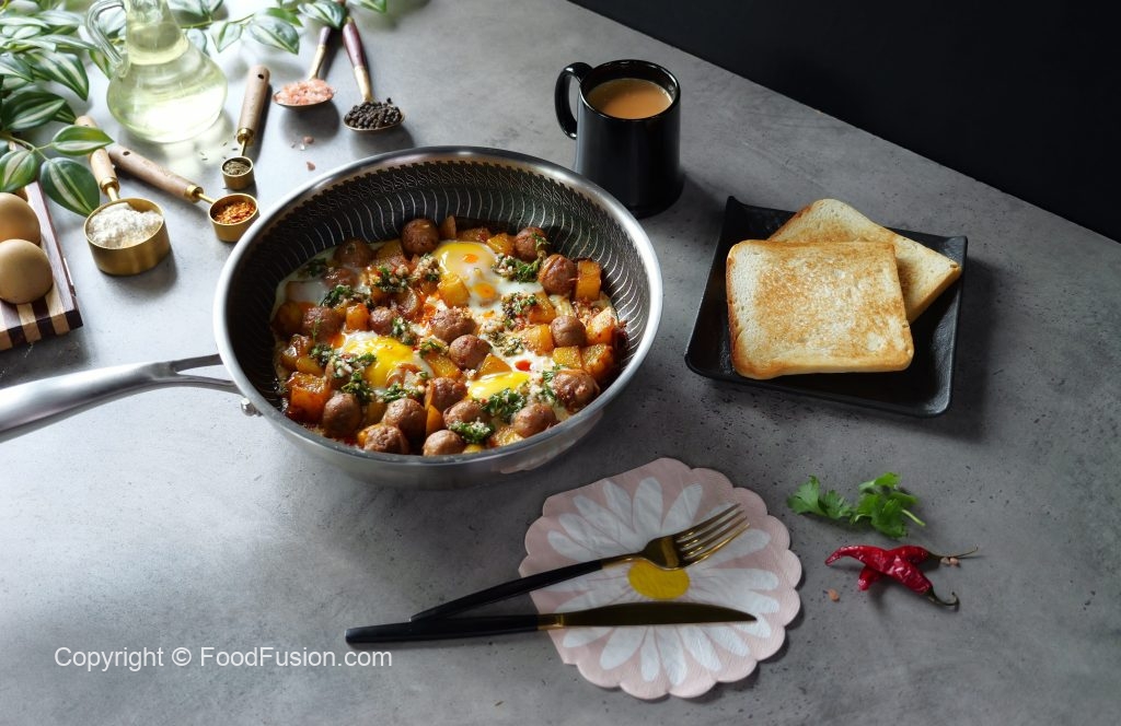 -Greased frying pan mein meatballs dal dein,chulha on karein aur halki ancch per light golden ho janay tak fry ker lein (3-4 minutes) & side par rakh dein.