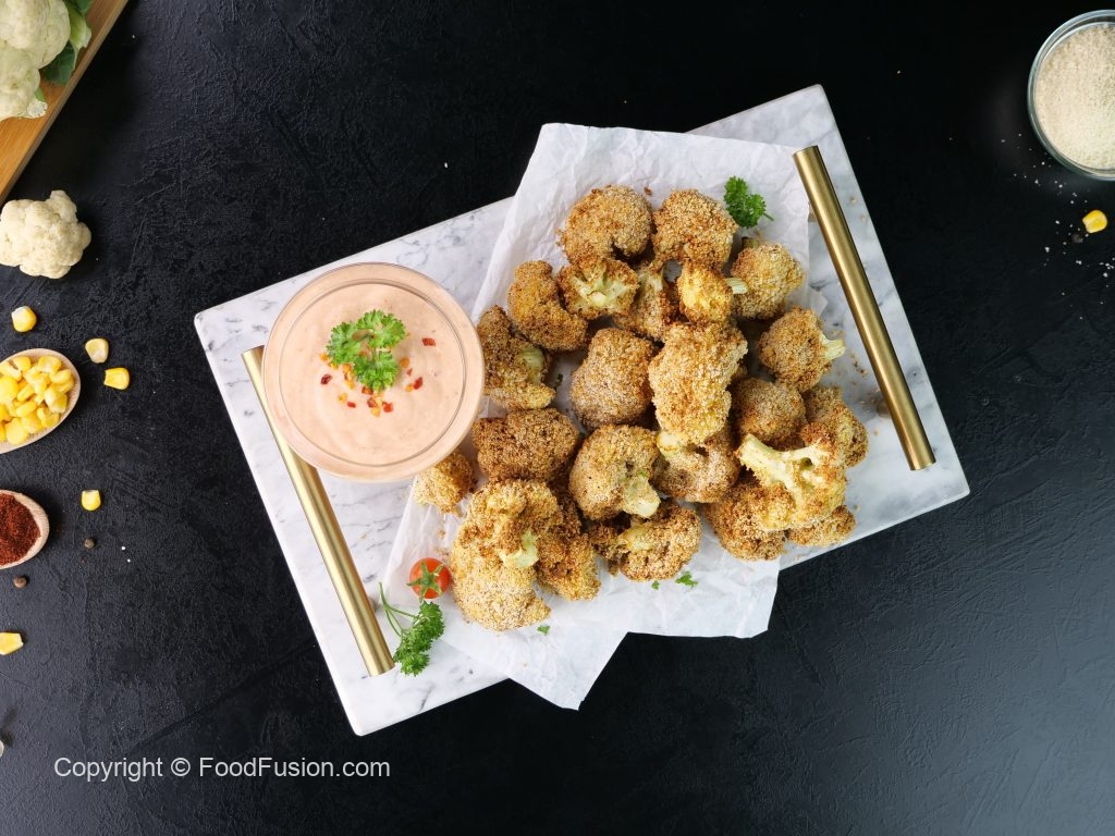 Prepare Crispy Cauliflower Bites with Yogurt Dip: