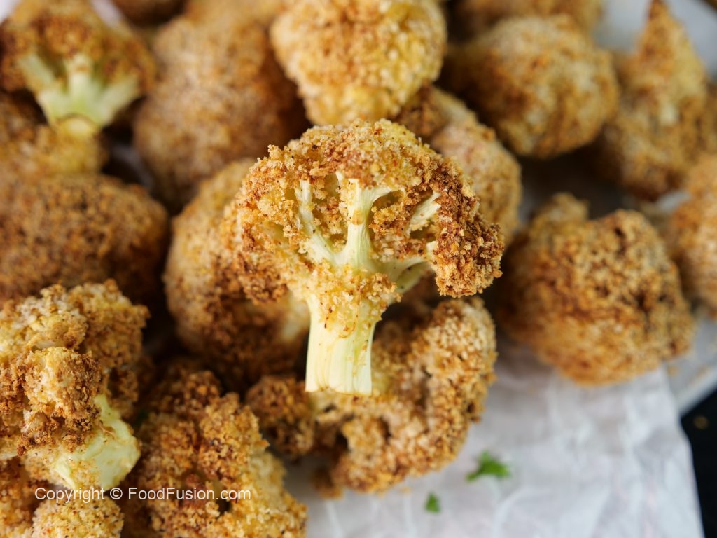 -Dip each cauliflower florets in whisked eggs & coat with breadcrumbs.