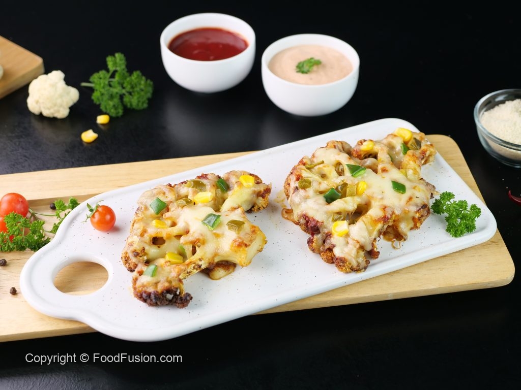 -On cauliflower disc,add & spread pizza sauce,add pizza cheese,capsicum,corn kernels,pickled jalapenos & air fry at 180C until cheese melts (3-4 minutes).