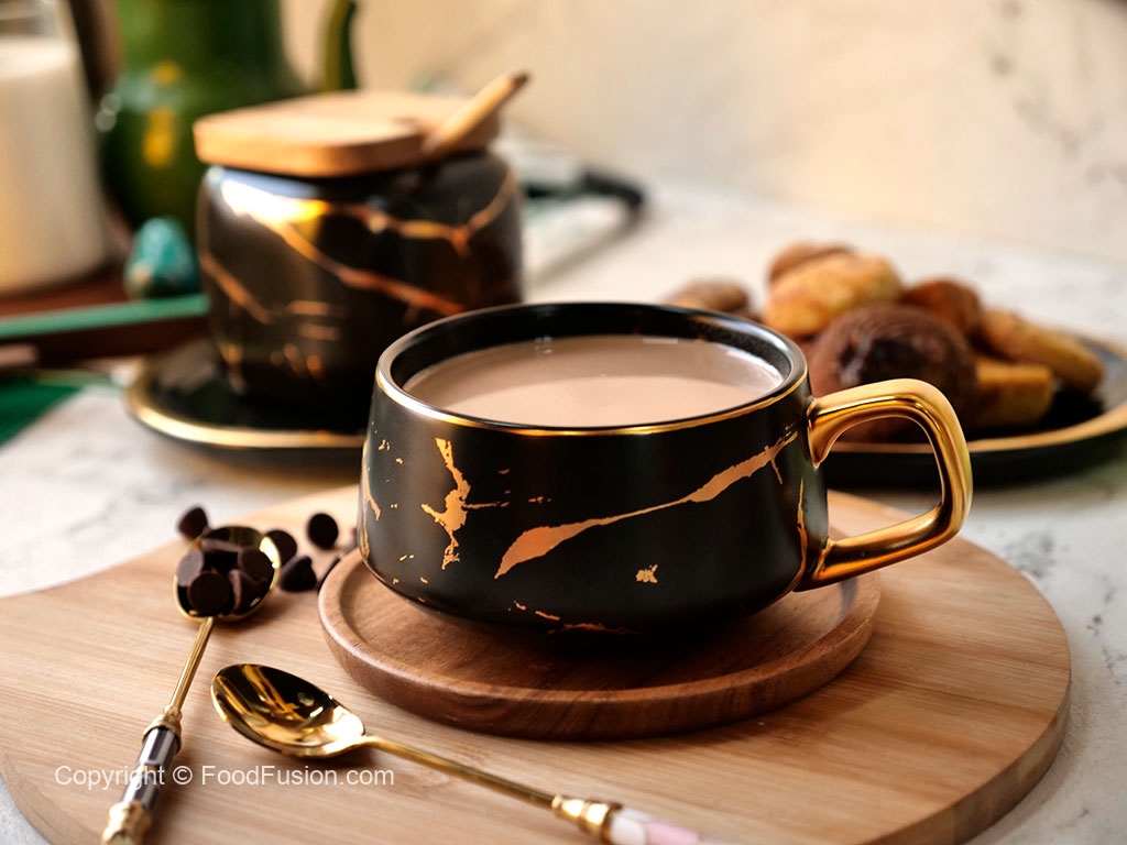 Serving cup mein chococlate tea dal ker serve karein!