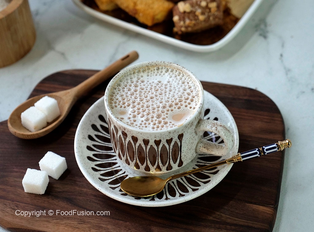Serving cup mein tayyar kehwa aur sweetened doodh dal dein aur stir ker ka serve karein!