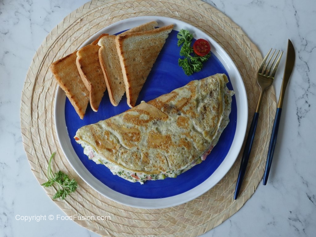 Carefully flip omelet,cover & cook on low flame for 2-3 minutes.