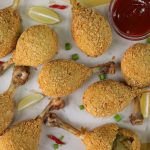 -Ab chicken drumsticks ko maida mein coat karein aur pheetay hoye anday mein dip ker lein phir cornflakes mein coat ker lein.