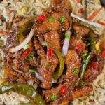 -Pyaz aur shimla mirch dal ker ache tarhan mix karein aur tez ancch per ek minute kliya paka lein.