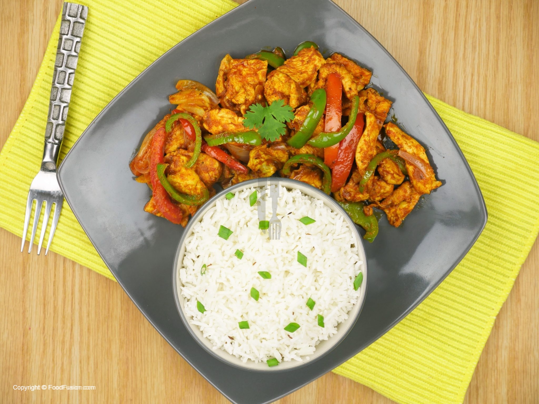 Chicken Jalfrezi tayyar hai, chawal ka saath serve karein.