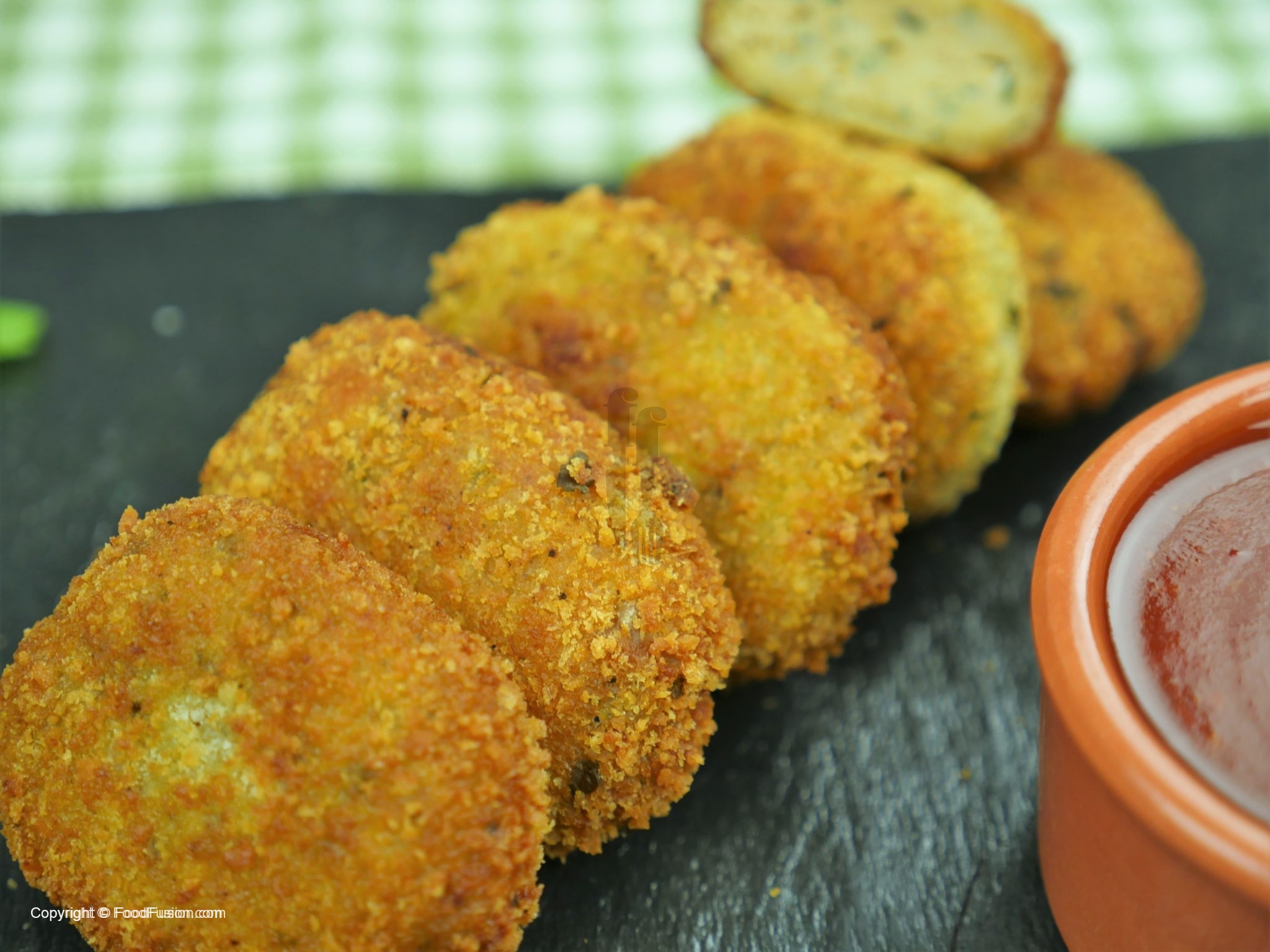 Maida wala mixture mein coat ker ka pheetay hoye anda mein dip ker ka breadcrumbs mein coat ker lein.