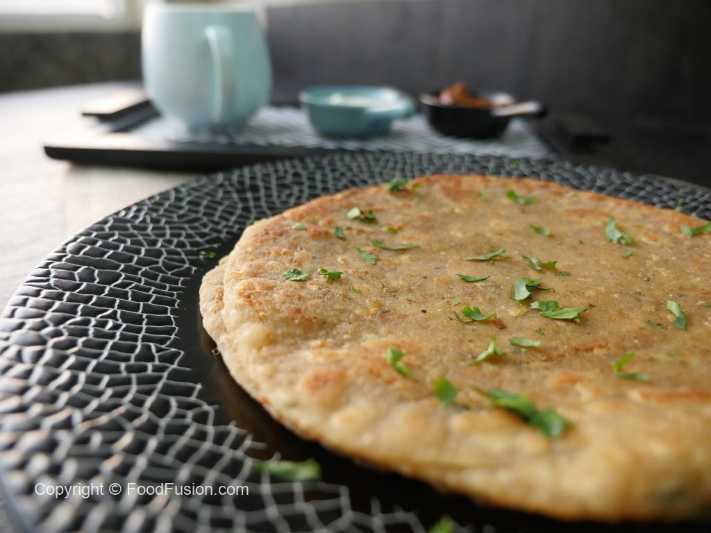 Flatten a dough ball with the help of hands and fry it in heated griddle until cooked from both the sides.