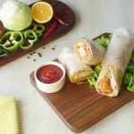 On paratha,drizzle tomato ketchup,stir fried vegetables,fried chicken nuggets and drizzle prepared cream & cheese sauce,warp in butter paper & serve!