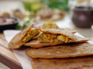 -Heat griddle & fry paratha with clarified butter on medium flame from both sides until golden (makes 9).