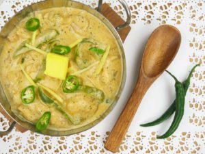 Adrak,hari mirch aur makhan sa garnish karein.