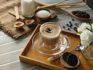 Add 2-3 tbs of prepared coffee base and whisk well until frothy.