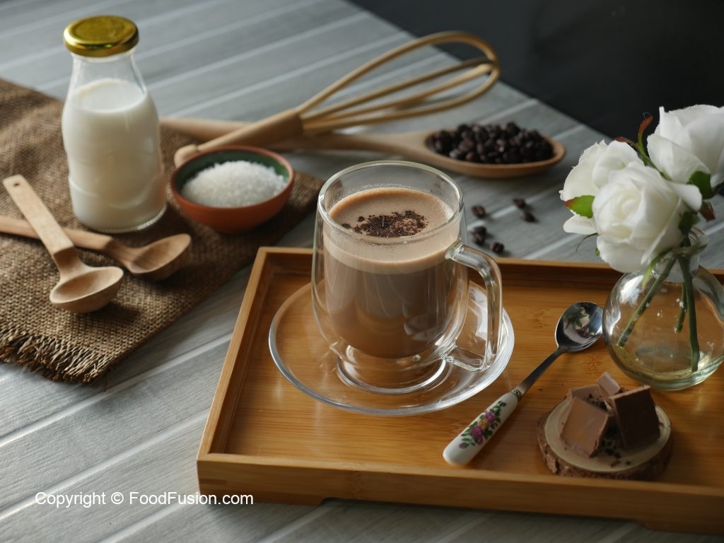 1-2 tbs tayyar coffee base dal ker frothy hunay tak ache tarhan whisk ker lein.
