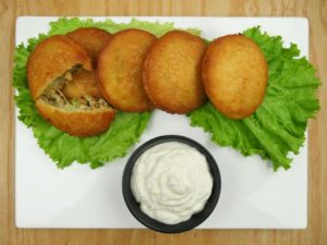 In bowl,add chicken,peas,potato,coriander,red chili,black pepper,salt,mozzarella cheese and Olper’s cream,mix well.