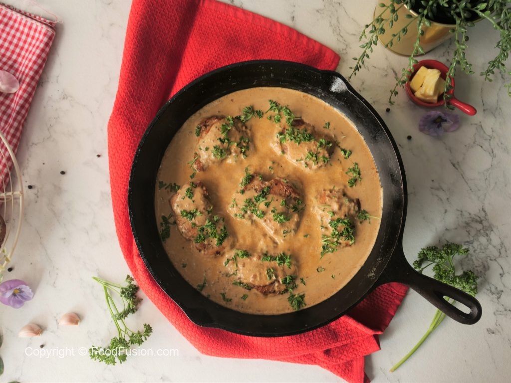 -Jug mein cream,yakhni,Dijon mustard,namak,kali mirch crushed,cayeen powder aur dried thyme dal ker ache tarhan whisk ker lein & side per rakh dein.