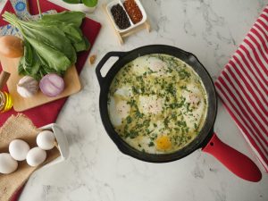 Cast iron frying pan mein olive oil aur lehsan dal ker ache tarhan mix ker lein.