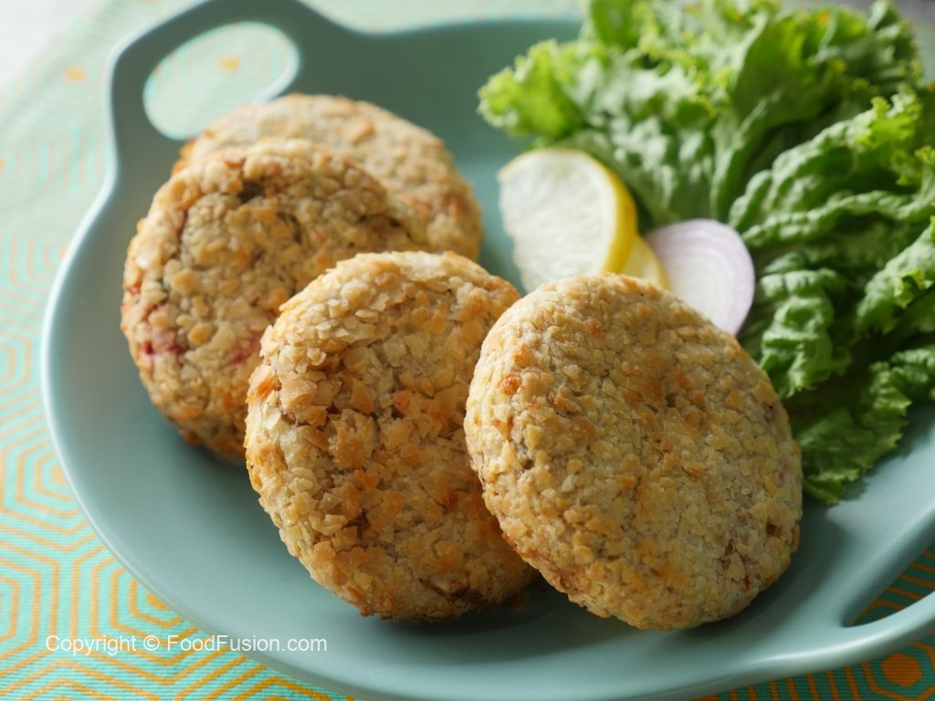 Grease hands with oil,taka a mixture and make cutlets of equal sizes then dip into all-purpose flour paste and coat in crumbled samosa/manda patti (makes 16-18).