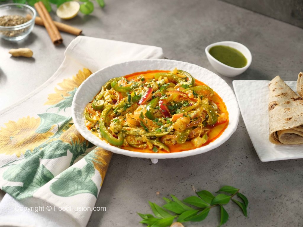 -Pyaz aur Shimla mirch ka mixture dal kar achi tarah mix karein aur darmiyani ancch par 4-5 minutes kliya paka lein.