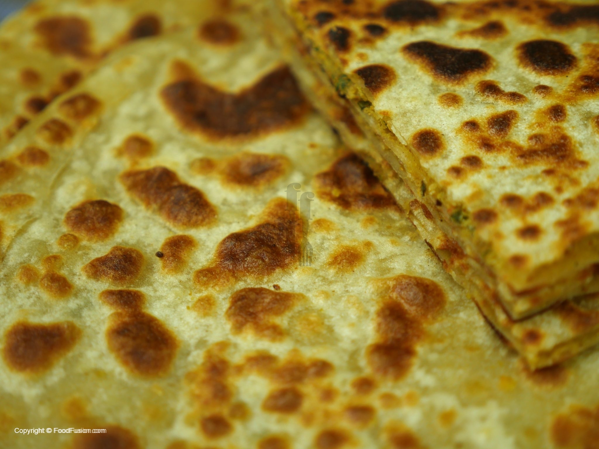 Tawa ko garam ker ka paratha ko ghee mein dono sides sa fry ker lein.