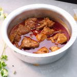 -Add water,mix well & cook on low flame until thick gravy is formed (18-20 minutes).