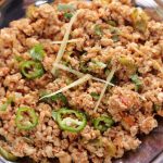 -In a wok,add cooking oil,hand chopped chicken mince & mix well until it changes color & cook on medium flame until it dries up (3-4 minutes).