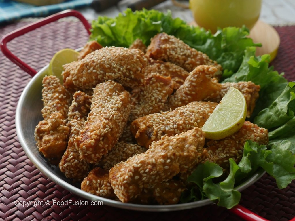 Fish pieces per safed til sprinkle ker lein.