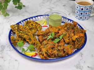 -Serve dhania pakora with green chutney!