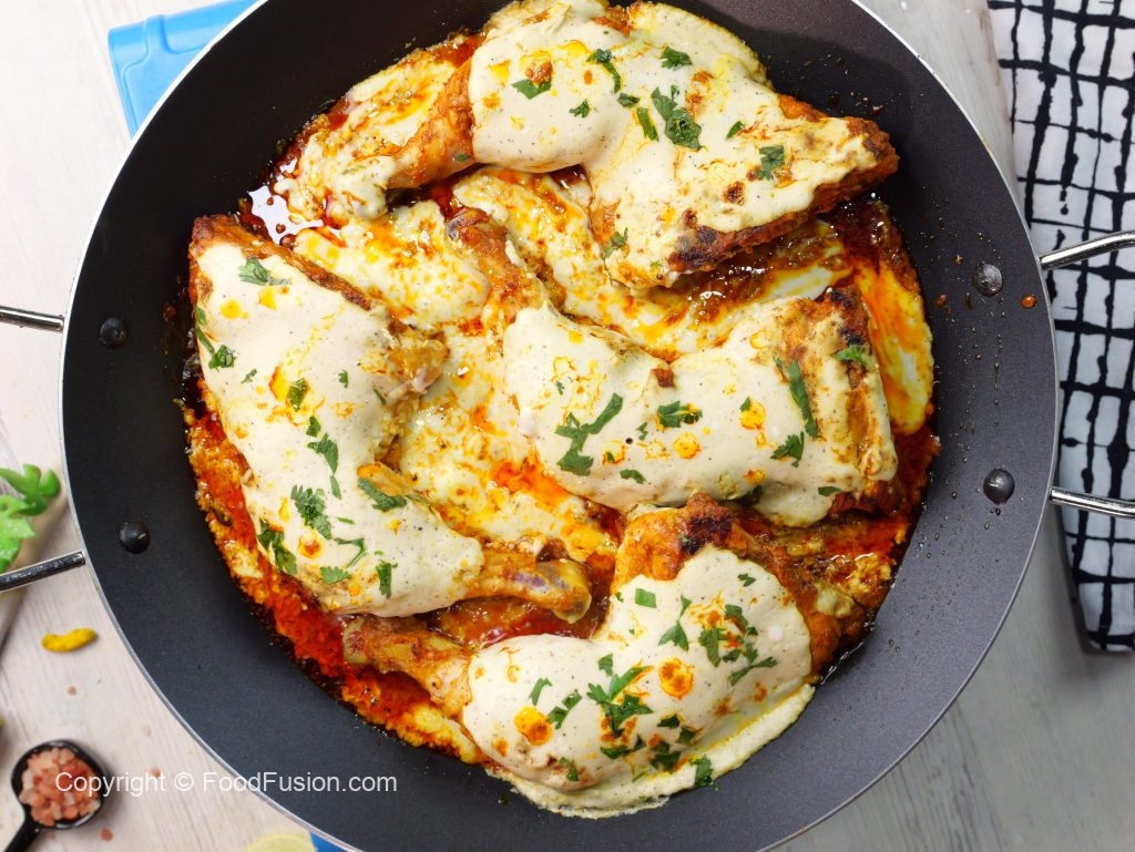 -Remove cover, flip the chicken pieces, pour prepared signature garlic sauce over chicken, cover & cook on low flame for 2-3 minutes.