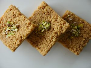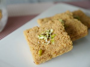 Cut into desired shape and add pistachios.