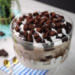 -Add prepared hot fudge sauce,brownie pieces & brush prepared coffee mixture on brownie pieces.