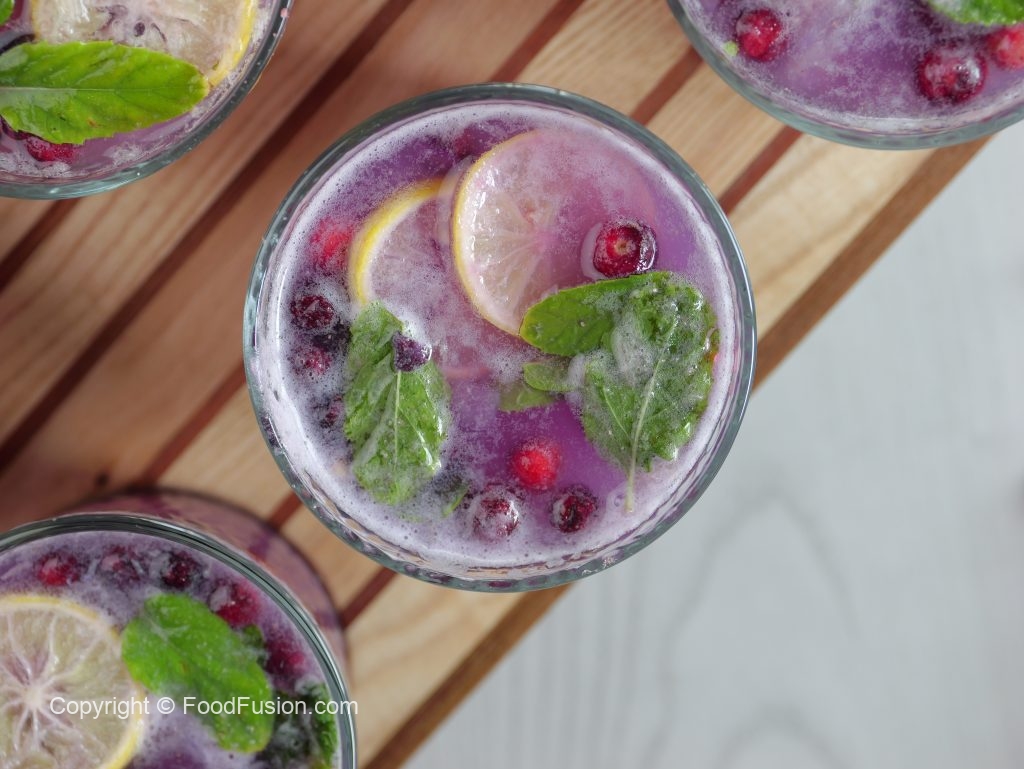 -In a serving glass,add lemon slices,pineapple chunks,mint leaves & muddle until it releases juices & becomes aromatic.
