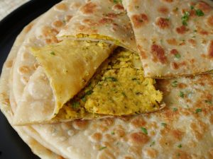 -Heat griddle,place rolled paratha & cook from both sides with ghee until golden & crispy.