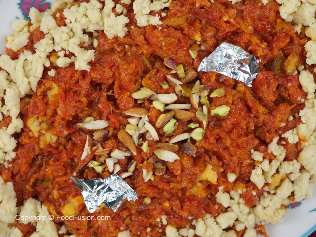 -Add grated carrots,mix well,cover & cook on medium flame for 5-6 minutes then cook until moisture dries up (10-12 minutes).