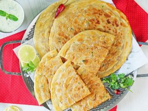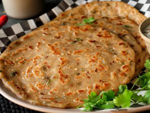 -Heat griddle,place paratha,add clarified butter & fry on low flame from both sides until golden (makes 8).