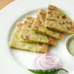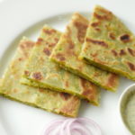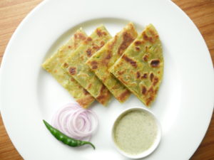 In bowl,add wheat flour,ghee,salt,blended green mixture and mix well.