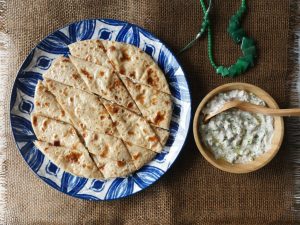 -Sprinkle dry flour & roll out with the rolling pin (makes 5-6).