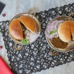 Serve kaleji bun kabab with onion and bun kabab chutney.