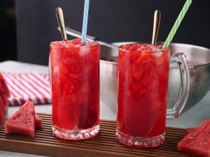 -Bowl mein ice cubes aur tarbooz (cut in small cubes) dal ker ache tarhan mix karein.