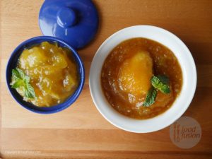 In raw mango pulp,add sugar,red chili powder,salt and water,mix well until sugar is dissolved.