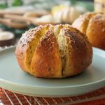 When the bread is cool enough to handle,cut each bread into 6 equal wedges (make sure to not completely cut through the bread and stay intact).